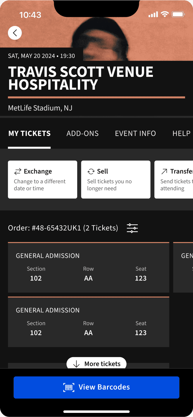 I led the redesign of Ticketmaster’s ticket management page within the App & SDK team, focusing on iOS & Android. Used by millions of fans every month to access their tickets, the new experience was designed to scale seamlessly across 300+ client apps that integrate Ticketmaster’s ticketing solutions.