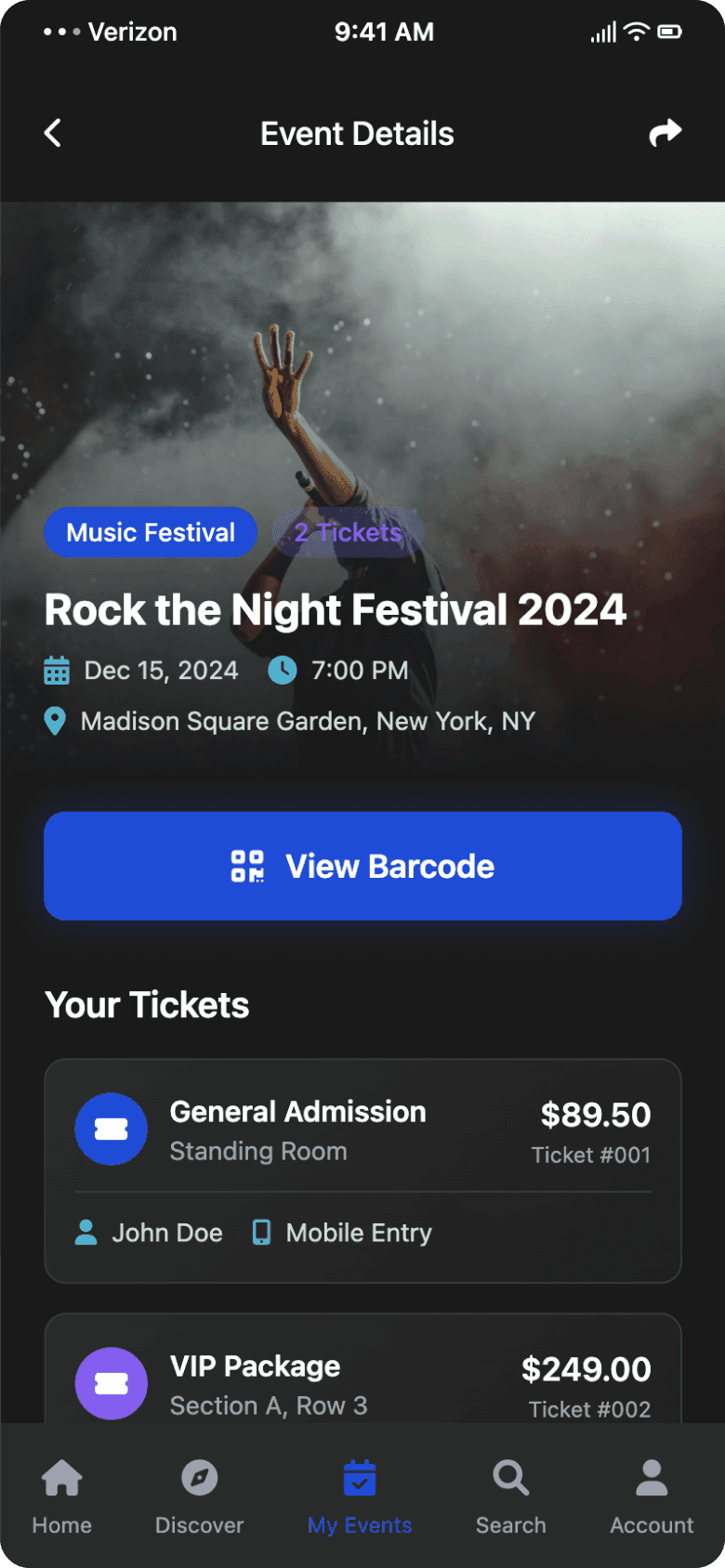 My tickets page