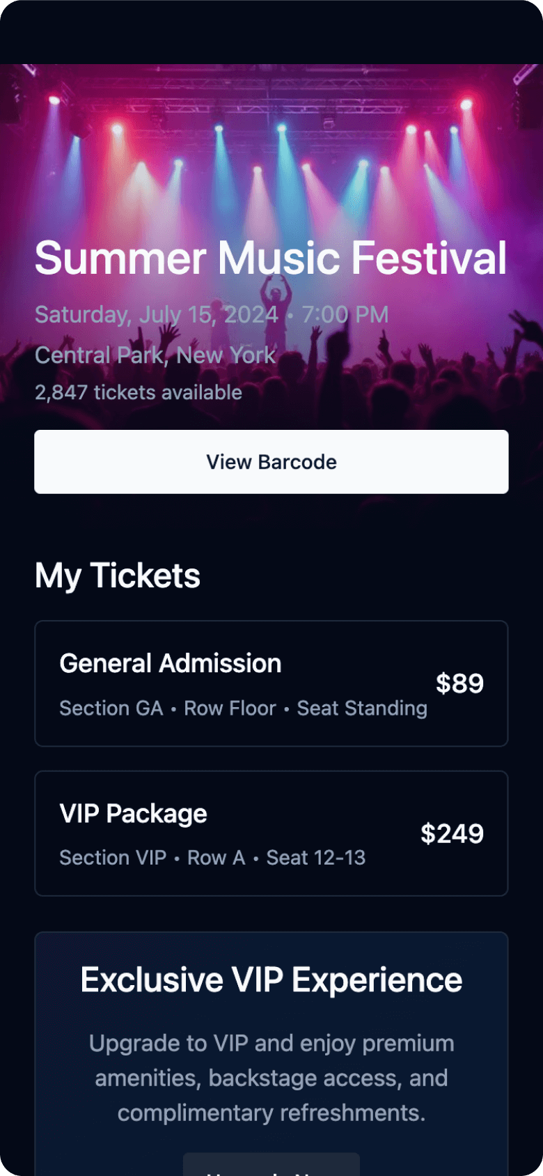 I led the end-to-end design execution, addressing the core user challenge: confusion between the order summary and accessing tickets. By restructuring the page hierarchy and surfacing the “View Barcode” CTA, I created a clearer, more intuitive experience across platforms. Support for dark/light modes and alignment with platform specific guidelines (Material Design & HIG) further improved usability.